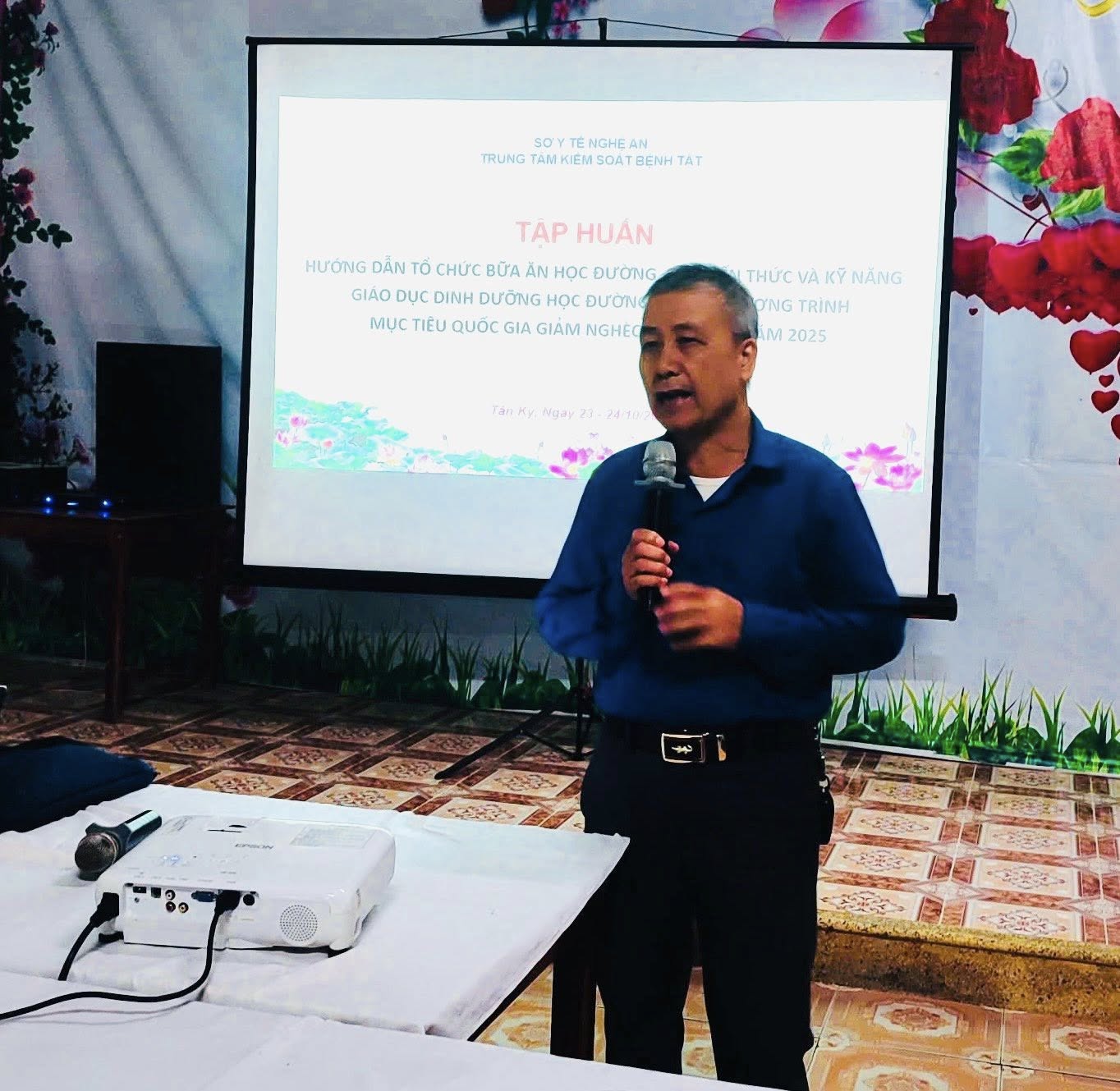 Ngày 23/10, Trung tâm Kiểm soát bệnh tật tỉnh Nghệ An đã tổ chức tập huấn về “Hướng dẫn tổ chức bữa ăn học đường, các kiến thức và kỹ năng giáo dục dinh dưỡng học đường” thuộc Chương trình Mục tiêu Quốc gia giảm nghèo bền vững năm 2025 tại xã Yên Thành và xã Tân Kỳ,
