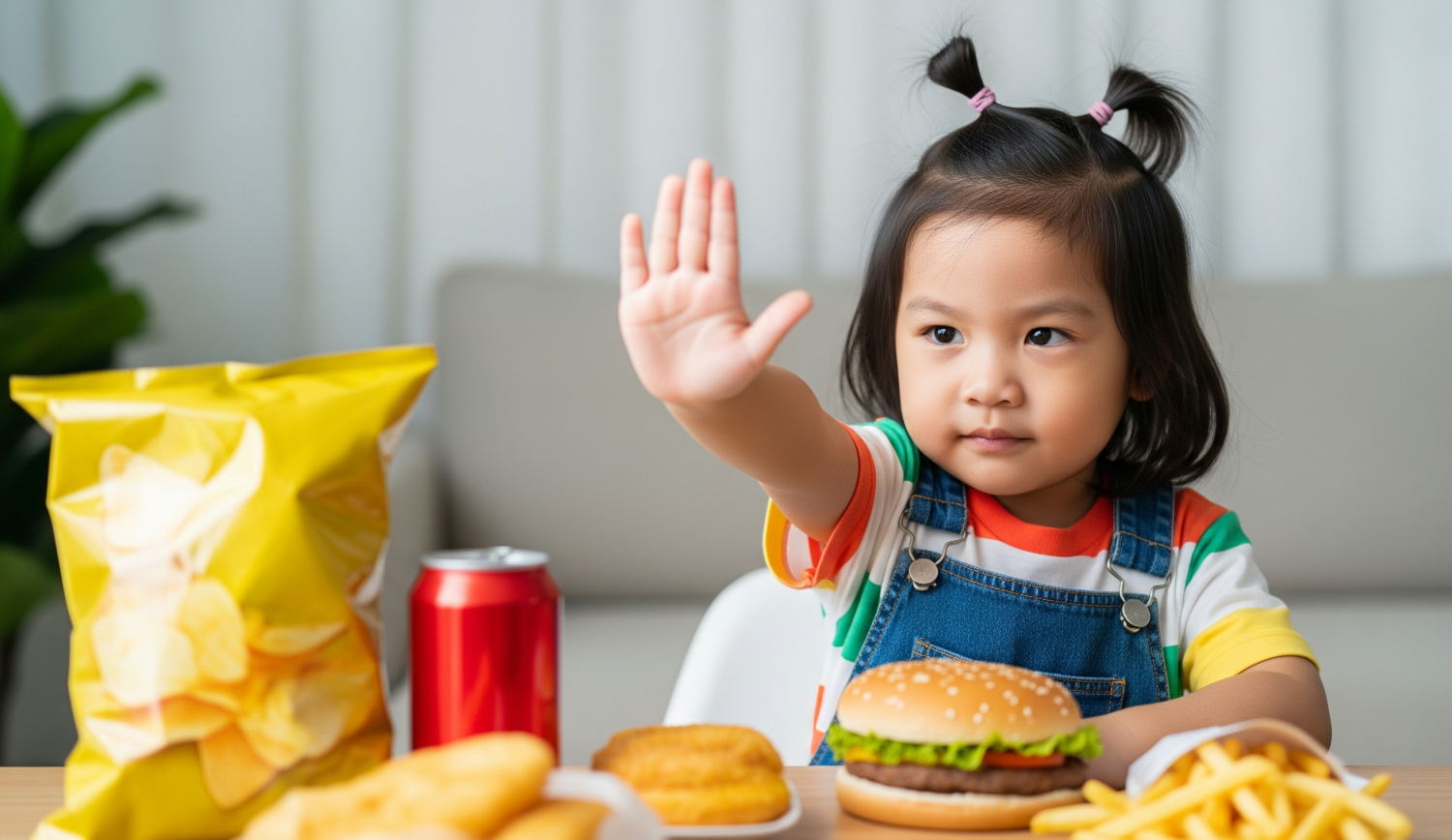 Bên cạnh những thực phẩm cần thiết cho sự phát triển của trẻ thì cũng có nhưng thực phẩm cần tránh cho trẻ. Trẻ em nên hạn chế tiêu thụ quá nhiều thực phẩm chứa đường tự do, muối và chất béo bão hòa, như kẹo, nước ngọt, đồ chiên rán và thức ăn nhanh. Những thực phẩm này không chỉ thiếu dưỡng chất mà còn có thể gây ra các vấn đề về sức khỏe như béo phì, sâu răng và rối loạn chuyển hóa.