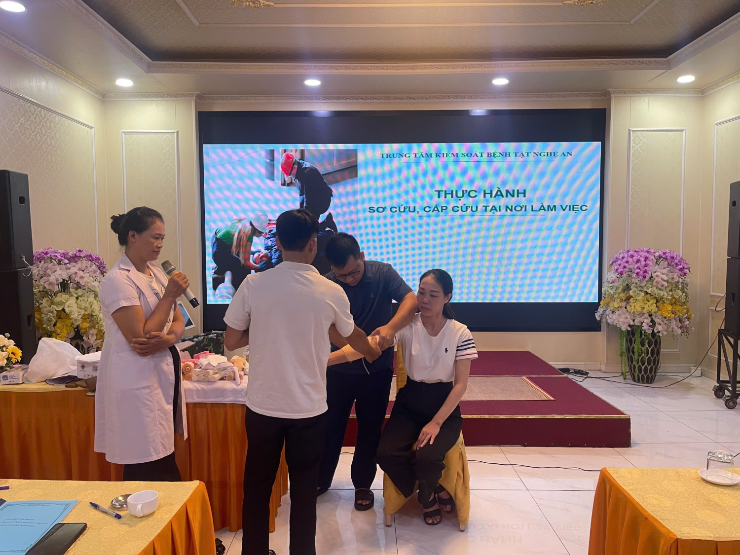 Trong hai ngày 04–05/9/2025, Trung tâm Kiểm soát bệnh tật (CDC) tỉnh Nghệ An đã tổ chức lớp huấn luyện sơ cứu, cấp cứu ban đầu cho người lao động. Chương trình thu hút sự tham gia của cán bộ y tế cơ quan và 1 số cán bộ an toàn lao động tại các đơn vị, doanh nghiệp, cơ sở y tế trên địa bàn tỉnh