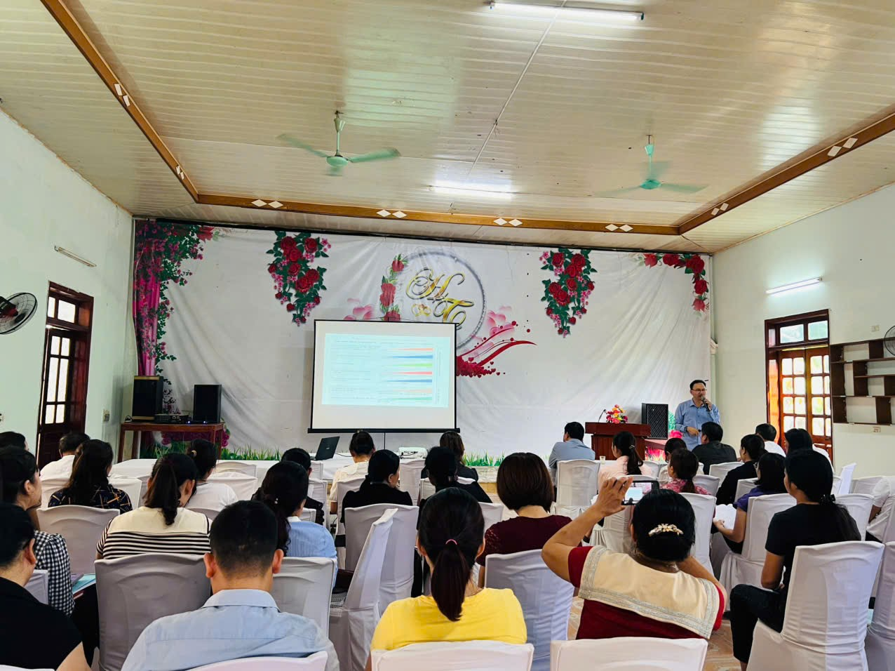 Ảnh: Giảng viên Nguyễn Thanh Hải, bệnh viện Nội tiết Nghệ An, đang cập nhật kiến thức về QLĐT bệnh đái tháo đường tại TYT