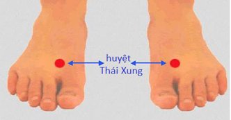 Huyệt thái xung ở sau khe giữa ngón chân 1 và 2, đo lên 1, 5 thốn, trong chỗ lõm tạo nên bởi 2 đầu xương ngón chân 1 và 2.