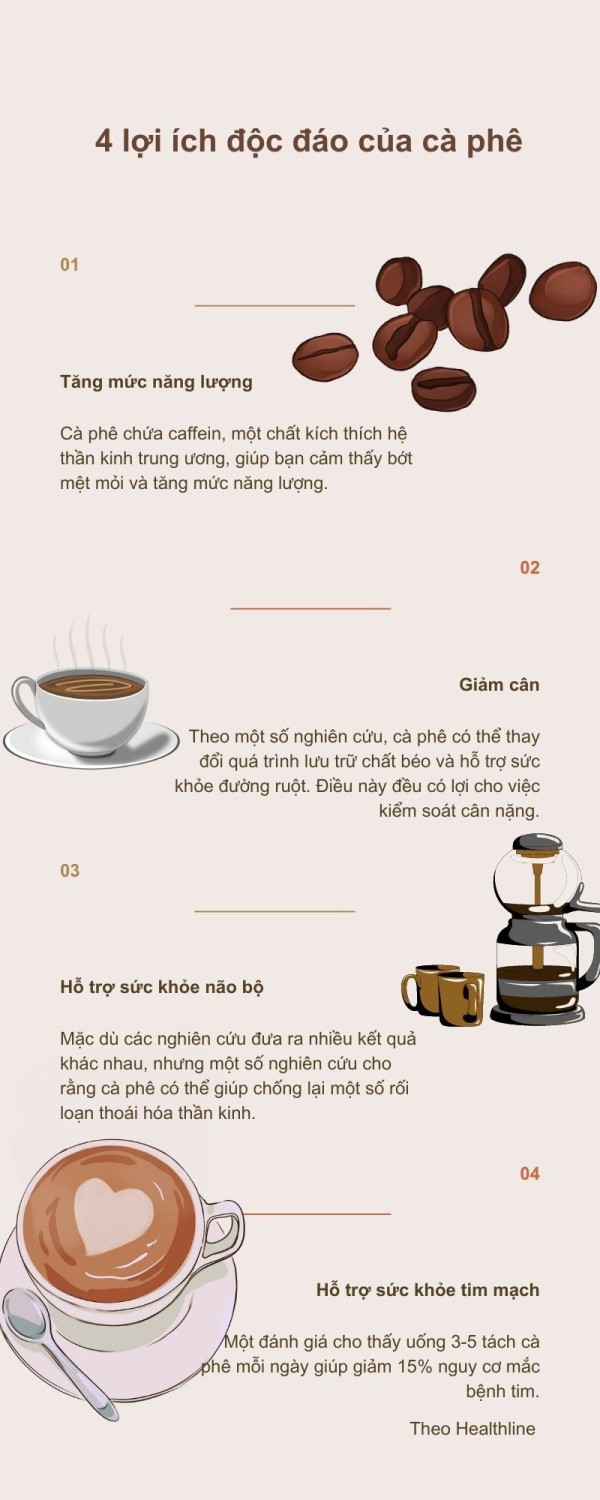 Tiêu thụ cà phê hàng ngày có thể mang lại những lợi ích sức khỏe sau: