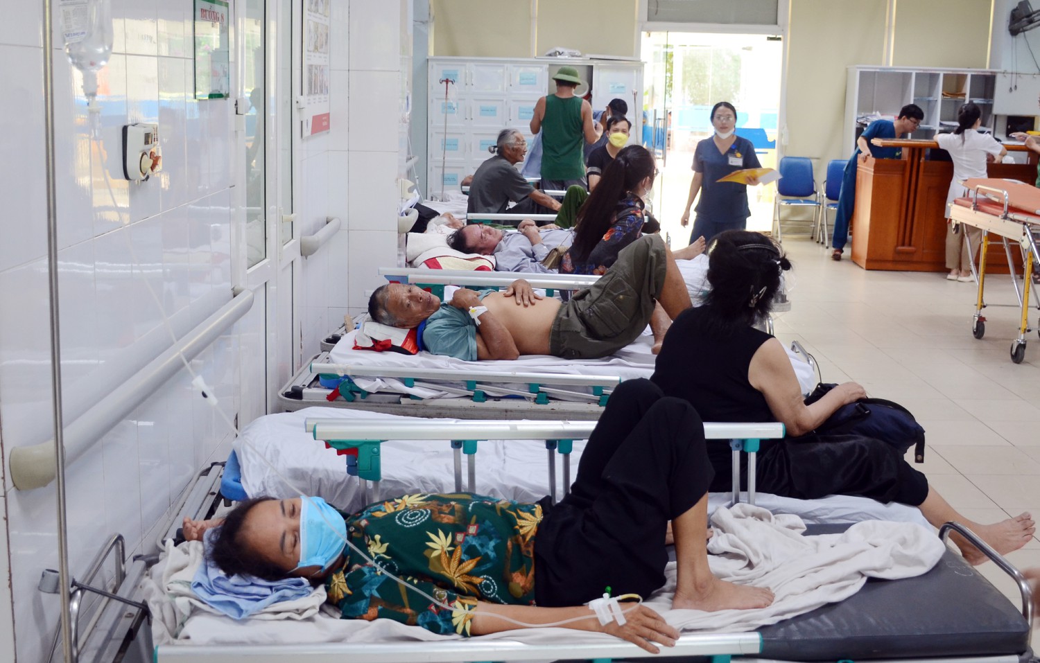Cũng theo bác sĩ Tân, ngoài các bệnh mãn tính thì lượng bệnh nhân mắc tai nạn thương tích cũng tăng như tai nạn giao thông, đuối nước ở trẻ em. Bên cạnh đó, lượng bệnh nhân bị say nắng, sốc nhiệt phải vào cấp cứu cũng không ít.... Trong điều kiện thời tiết nắng nóng này, Khoa Cấp cứu luôn bật hệ thống điều hòa 24/24 giờ, bố trí đầy đủ nhân lực và sẵn sàng huy động thêm nhân lực để cấp cứu, nhanh chóng chuyển bệnh nhân về các khoa, phòng nhằm ổn định điều trị và tránh tình trạng quá tải.