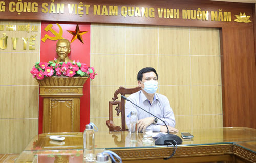Tại điểm cầu Sở Y tế Nghệ An có TS Đậu Huy Hoàn - Phó Giám đốc Sở Y tế - Chủ trì; Thành phần tham gia Hội nghị có đại diện Bộ chỉ huy Quân sự tỉnh; kho K55/Cục Hậu cần Quân khu IV; Công an tỉnh; Trưởng các phòng ban liên quan của sở Y tế; Lãnh đạo Trung tâm CDC Nghệ An; Bệnh viện Hữu nghị đa khoa tỉnh; các Bệnh viện/ Viện trực thuộc Bộ.