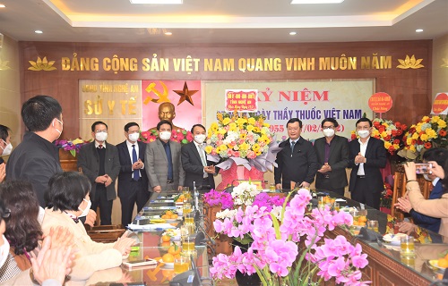 Chủ tịch UBND tỉnh cùng các đồng chí trong đoàn Tặng hoa chúc mừng Sở Y tế Nghệ An nhân ngày Thầy thuốc Việt Nam 27/02