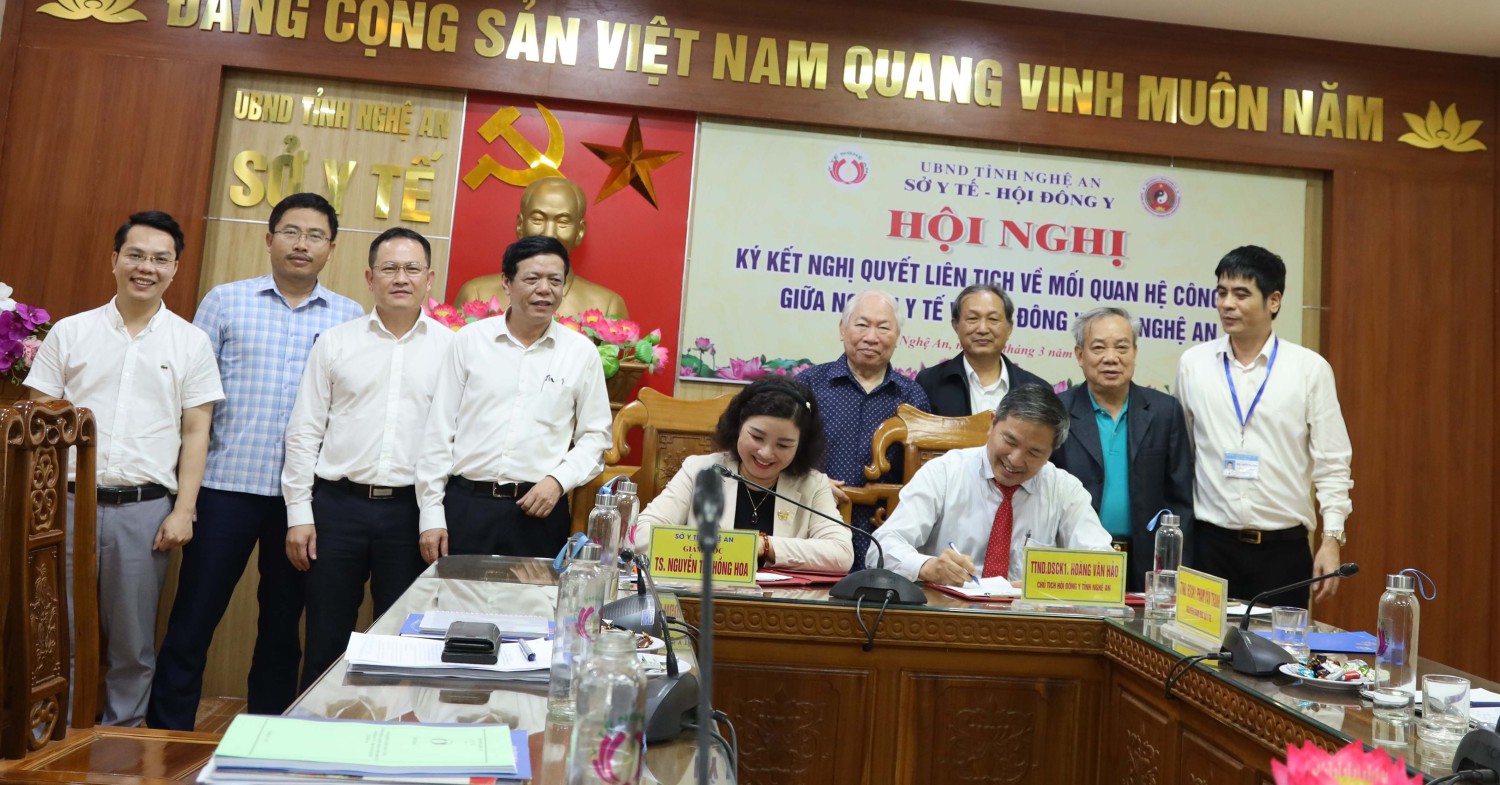 Giám đốc Sở Y tế và Chủ tịch Hội Đông y đã ký kết Nghị quyết liên tịch về mỗi quan hệ giữa ngành Y tế và Hội Đông y Nghệ An.cho giai đoạn tiếp theo
