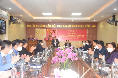 Hội nghị đã được nghe TS BS- Nguyễn Hữu Lê Phó Giám đốc Sở Y tế báo cáo công tác y tế năm 2021 và triển khai nhiệm vụ năm 2022 . Trong năm 2021, dịch COVID-19 diễn biến phức tạp đã tác động tiêu cực, ảnh hưởng lớn đến quá trình thực hiện các mục tiêu, chỉ tiêu y tế. Ngành Y tế Nghệ An được sự quan tâm của các cấp các ngành,các địa phương và nỗ lực của ngành y tế nên đã đạt được những kết quả quan trọng góp phần đạt được mục tiêu, phát huy năng lực toàn ngành, nỗ lực khắc phục khó khăn, tăng cường, nâng cao chất lượng hệ thống y tế cơ sở. Đặc biệt trong công tác phòng chống dịch bệnh Covid-19.
