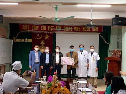 Tại huyện Đô Lương, Giám đốc Sở Y tế đã đến thăm, tặng quà: Trung tâm Y tế huyện Đô Lương, Cơ sở thu dung điều trị bệnh nhân COVID-19 Lưu Sơn, Trạm Y tế Lưu Sơn, Trạm y tế xã Thuận Sơn.
