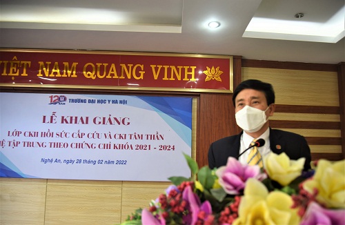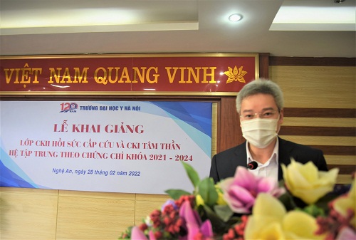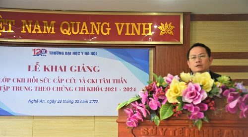 Tại buổi lễ khai giảng lớp học,TS.BS Nguyễn Hữu Lê - Phó giám đốc Sở Y tế cảm ơn và chúc sức khỏe tới các Thầy, Cô giáo Trường Đại học Y Hà Nội đã quan tâm, giúp đỡ, tạo điều kiện cho ngành Y tế tỉnh Nghệ An. Qua đó cũng hy vọng các học viên vượt qua những khó khăn trước mắt để hoàn thành khóa học với kết quả cao nhất.