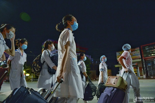 Thực hiện phòng chống dịch, kể từ 4 ca nhiễm đầu tiên là công dân nhập cảnh vào tháng 4/2021 cho đến nay, hàng nghìn cán bộ, nhân viên y tế của ngành Y tế Nghệ An đã phải làm việc suốt ngày đêm; chạy đua từng phút, từng giờ chống chọi với dịch COVID-19 và tiêm vắc-xin. Giữa những ngày nóng nực, trong bộ đồ bảo hộ kín bưng, các cán bộ y tế vẫn cần mẫn lấy mẫu cộng đồng. Vào những đêm Đông lạnh buốt, các bộ y tế vẫn dò dẫm bước theo ánh đèn pin lên những bản, làng thực hiện điều tra, truy vết, lấy mẫu cho các đối tượng nguy cơ cao, tránh bỏ sót các đối tượng nghi ngờ. Bất cứ nơi nào xuất hiện ca nhiễm, nơi nào còn có người chưa được tiêm chủng, các cán bộ y tế đều có mặt. Họ đã thực hiện nhiệm vụ như đúng lời dạy của Bác Hồ kính yêu đã dặn dò: “Phải lao mình vào chỗ bẩn để làm cho sạch, phải dấn thân vào chỗ đau khổ để làm giảm bớt đau khổ. Lương y phải như từ mẫu”.