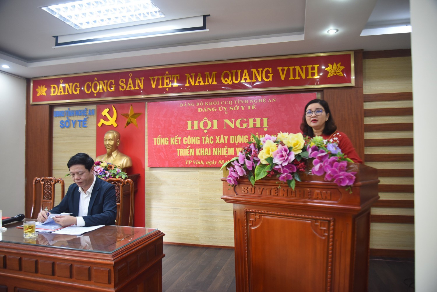 Sáng 8/12, Đảng bộ Sở Y tế Nghệ An tổ chức Hội nghị tổng kết công tác xây dựng Đảng năm 2023 và triển khai phương hướng nhiệm vụ năm 2024. Tham dự và chỉ đạo hội nghị có đồng chí Chu Bá Long - Phó Bí thư Đảng uỷ khối CCQT; đồng chí Lê Thị Kim Oanh - Uỷ viên ban Thường vụ - Trưởng ban Tuyên giáo Đảng ủy khối CCQT.