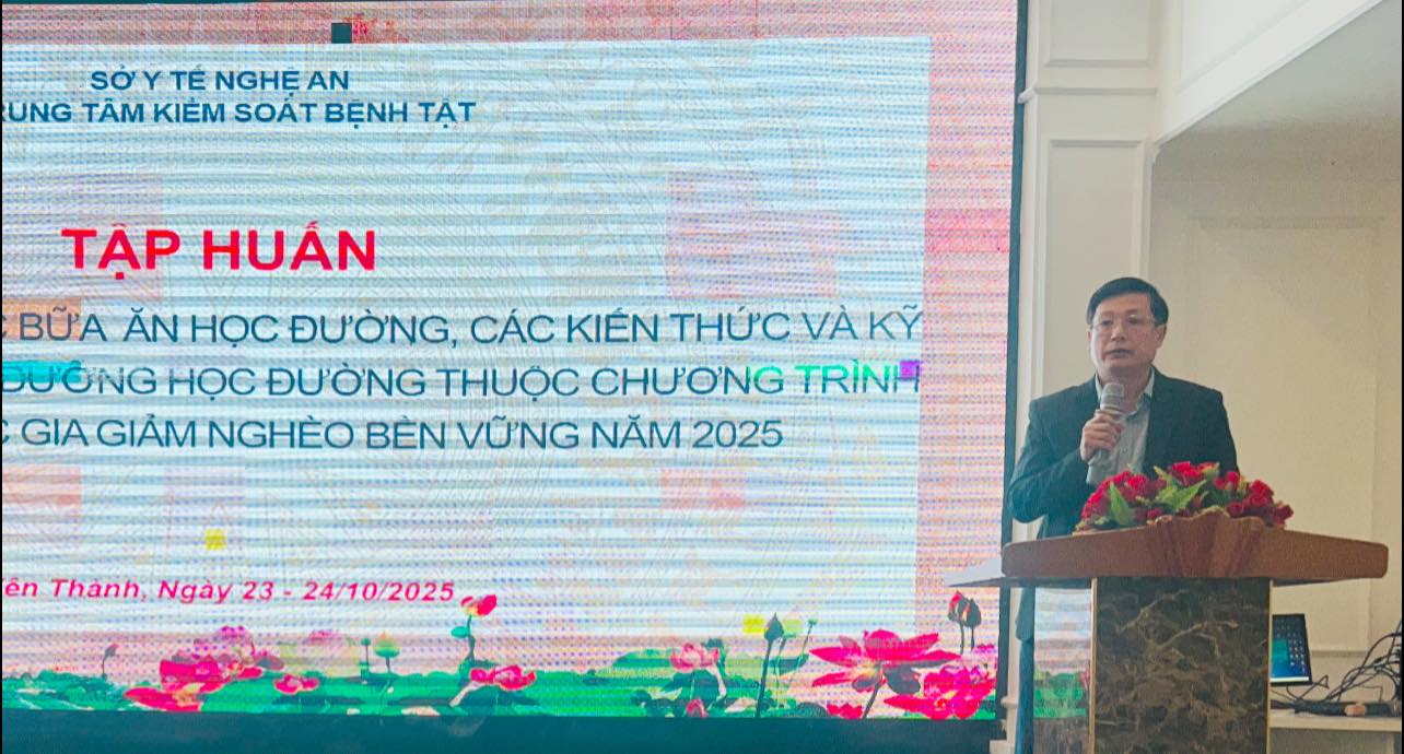 Ngày 23/10, Trung tâm Kiểm soát bệnh tật tỉnh Nghệ An đã tổ chức tập huấn về “Hướng dẫn tổ chức bữa ăn học đường, các kiến thức và kỹ năng giáo dục dinh dưỡng học đường” thuộc Chương trình Mục tiêu Quốc gia giảm nghèo bền vững năm 2025 tại xã Yên Thành và xã Tân Kỳ,