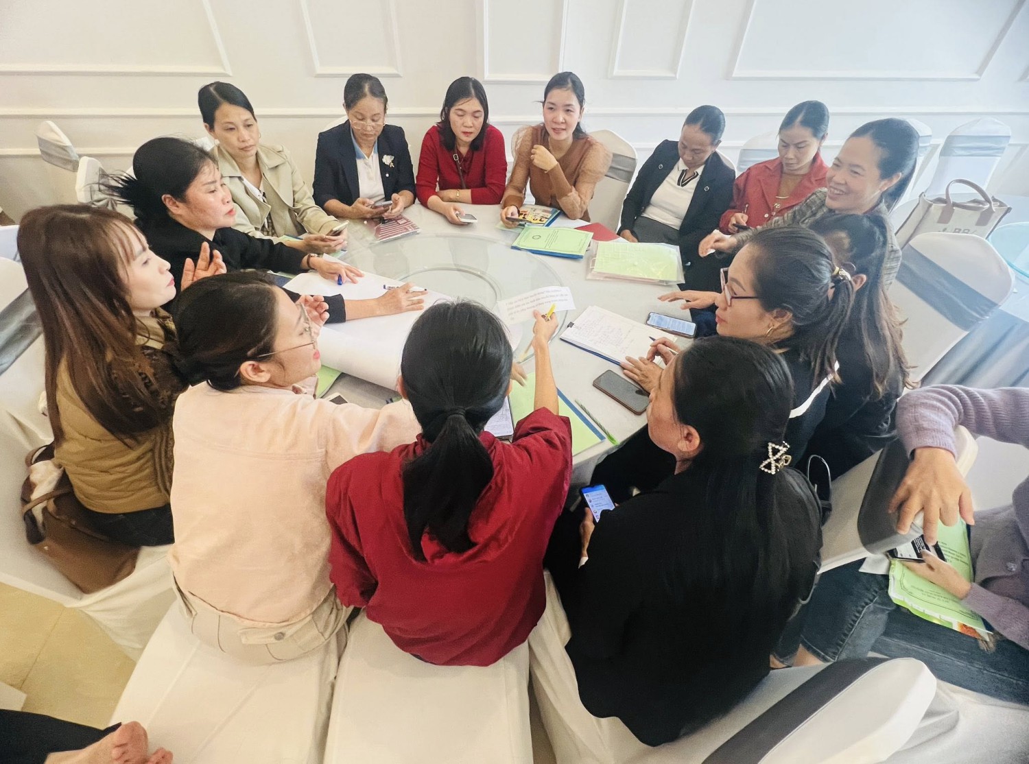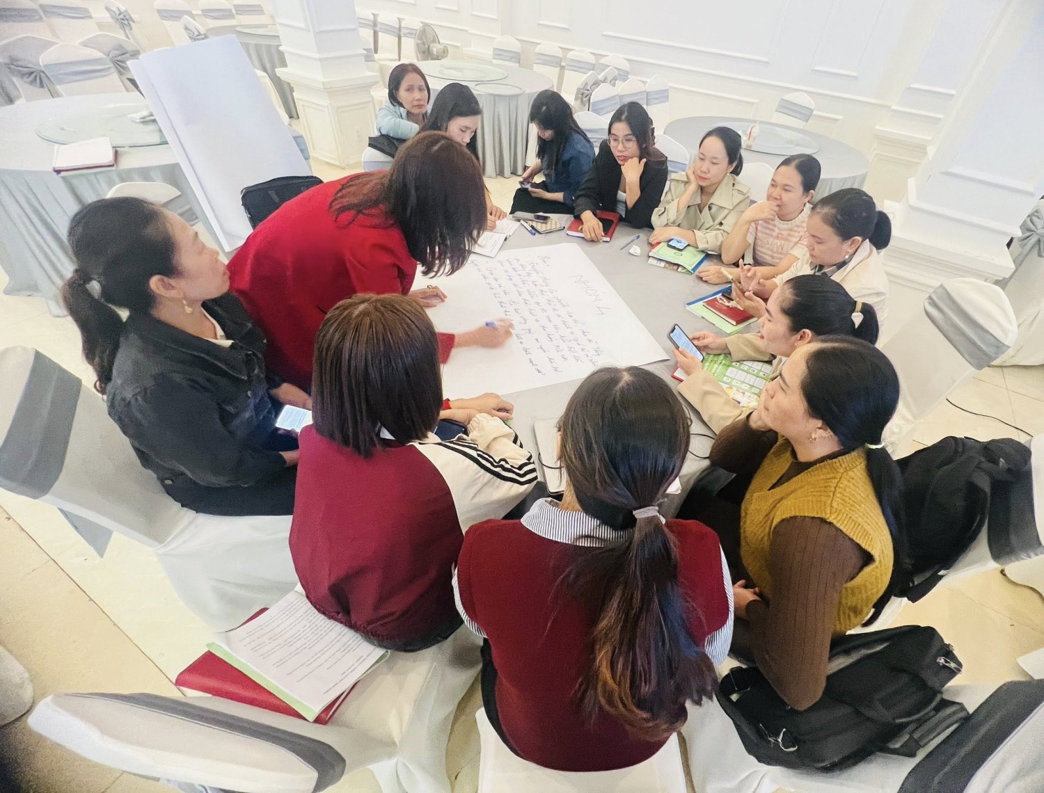 Các lớp tập huấn, giảng viên chia sẻ những kiến thức cơ bản và thực hành cần thiết để tổ chức bữa ăn học đường hiệu quả, bao gồm các nội dung quan trọng như:Tổng quan về chuyển hóa cơ bản và nhu cầu năng lượng; Xây dựng thực đơn và cân đong thực phẩm suất ăn; Hướng dẫn phương pháp hỏi ghi khẩu phần; Truyền thông và giáo dục dinh dưỡng; Hướng dẫn sử dụng tháp dinh dưỡng cho trẻ em 3-5 tuổi…