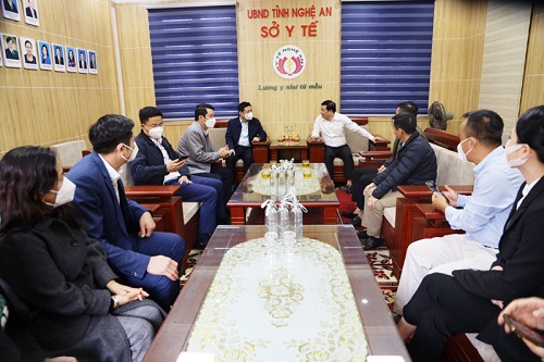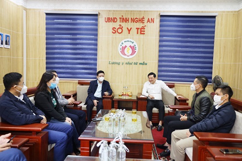 Tại buổi trao quà, đoàn đã được nghe báo cáo nhanh về công tác phòng, chống dịch bệnh CVID-19 tại tỉnh Nghệ An, đoàn đã ghi nhận và đánh giá cao công tác phòng, chống dịch COVID-19 của ngành Y tế Nghệ An trong thời gian qua; đồng thời chia sẻ, động viên khích lệ tinh thần của cán bộ, y, bác sĩ; chúc CBVC ngành Y tế có nhiều sức khỏe và bình an, cố gắng vượt qua khó khăn vất vả, phấn đấu hoàn thành xuất sắc nhiệm vụ được giao, góp phần tích cực vào công tác phòng chống dịch COVID-19 tại tỉnh nhà.